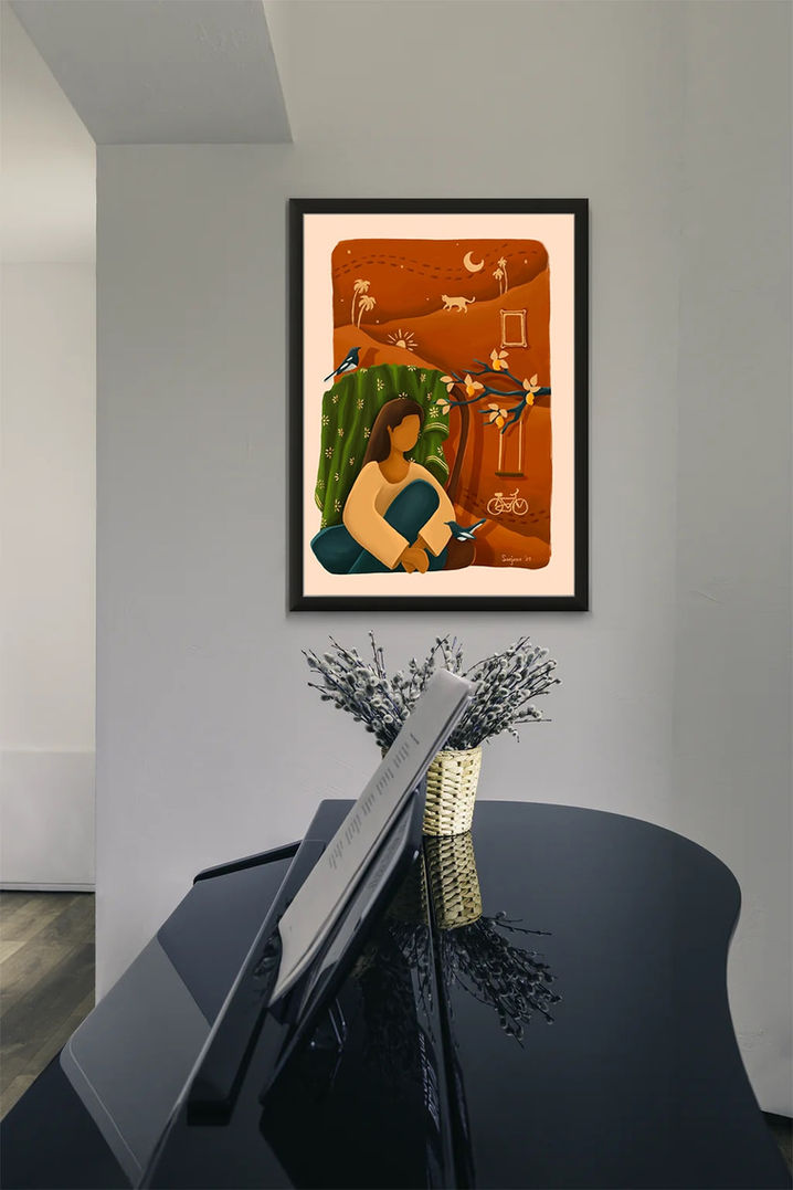 I’m Sanjana, an Indian illustrator and designer residing in Chennai. My paintings are rooted in a profound sense of nostalgia and memories, drawing inspiration from the world around me. They are characterized by warm colors, bold impressions, and vintage elements that evoke a timeless connection to the past while celebrating the beauty of the present.